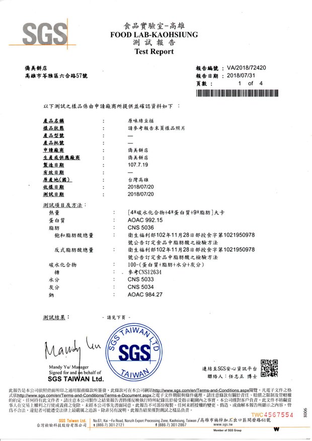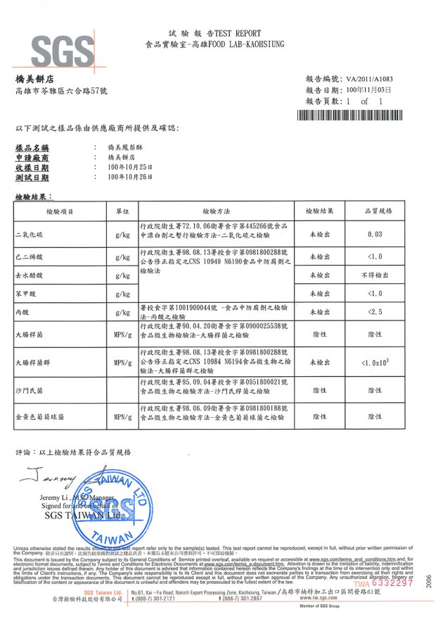採用頂級安全的食材,是開店30年來始終如一的信念,時時刻刻求進步,吸取新知識,讓自己俱有判別食材真偽與好壞的能力,這是經營者除了深厚製餅技術以外的另一項必備條件。本店手工製作各類糕餅(鳳梨酥、綠豆椪、太陽餅、鹹Q餅、蛋黃酥、訂婚餅…)所需油脂全部長期採用法國FlechardS.A.S發酵無水奶油,以及法國President Butter製造,品質優良、安全,敬請安心食用。
