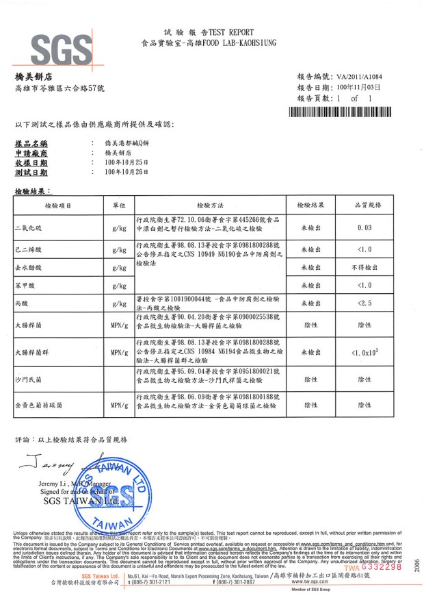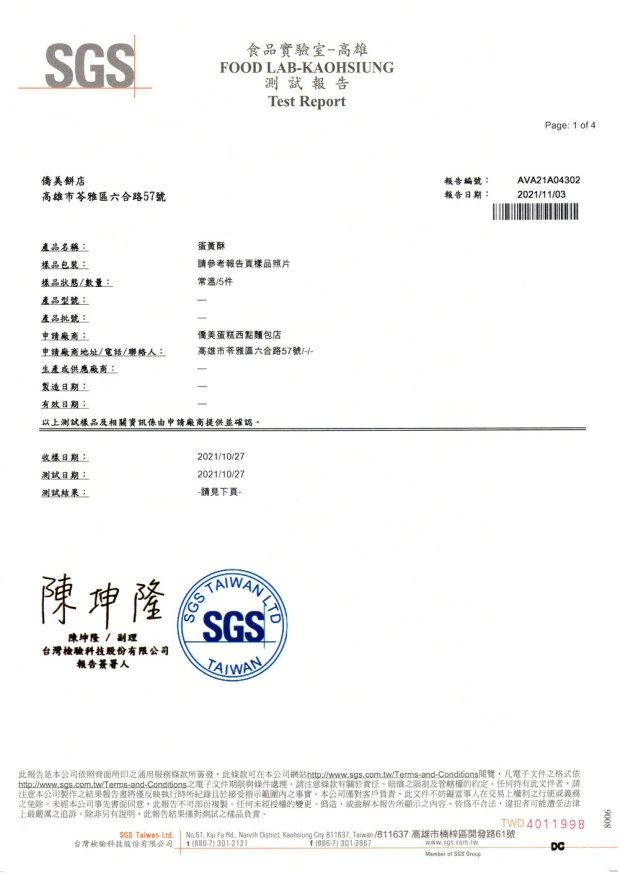 鳳梨酥、鳳黃酥、鹹Q餅,一直是主顧客及觀光客的讚賞與最愛。2013年傳統綠豆椪榮獲「高雄市政府綠豆椪大賽-最佳手藝獎」。2014年最佳風味獎:「芙蓉蜜棗酥」更是獨家研發最俱在地特色伴手禮。此物唯獨高雄有,願君多品嚐!